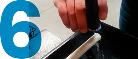 새 그립 안쪽에 미네랄 스피릿 그립 용제를 넉넉히 부어 줍니다.